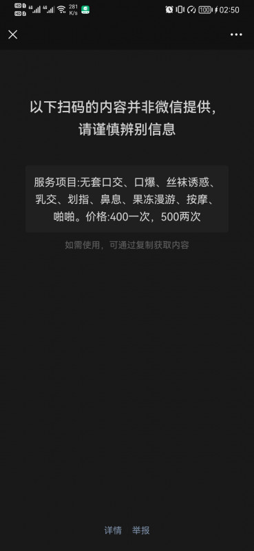 凡是有要求路费/定金/保证金/照片验证/视频验证等任何提前付费的行为,千万不要上当。同时也请注意仙人跳,在寻欢前不要露富和带过于贵重随身物品。本站为分享信息并不对寻欢经历负责,碰到有问题的信息,请及时举报给我们删除信息。